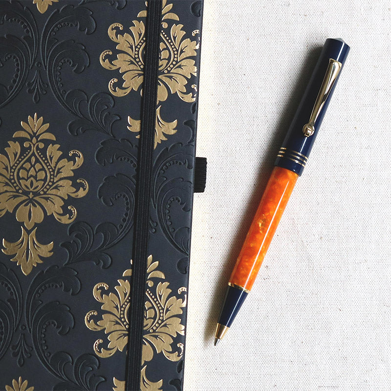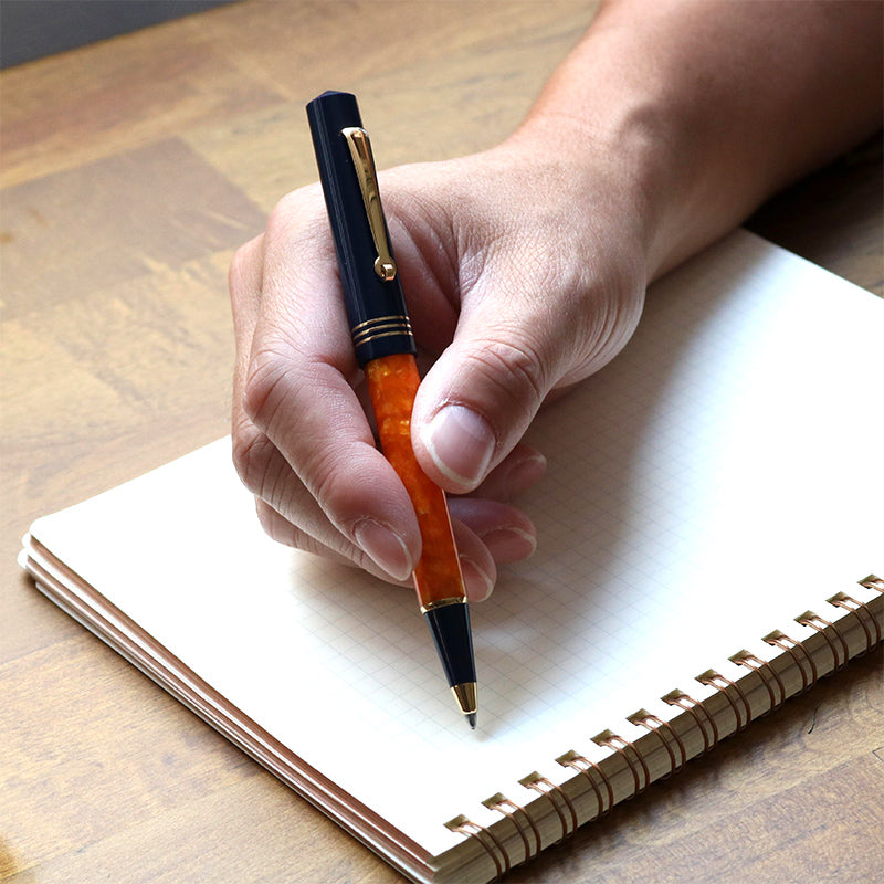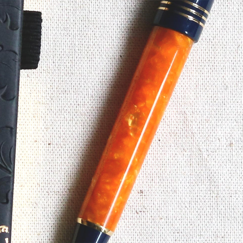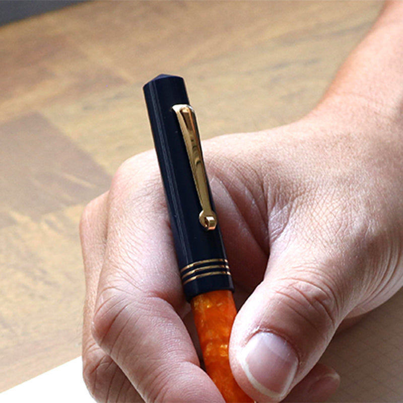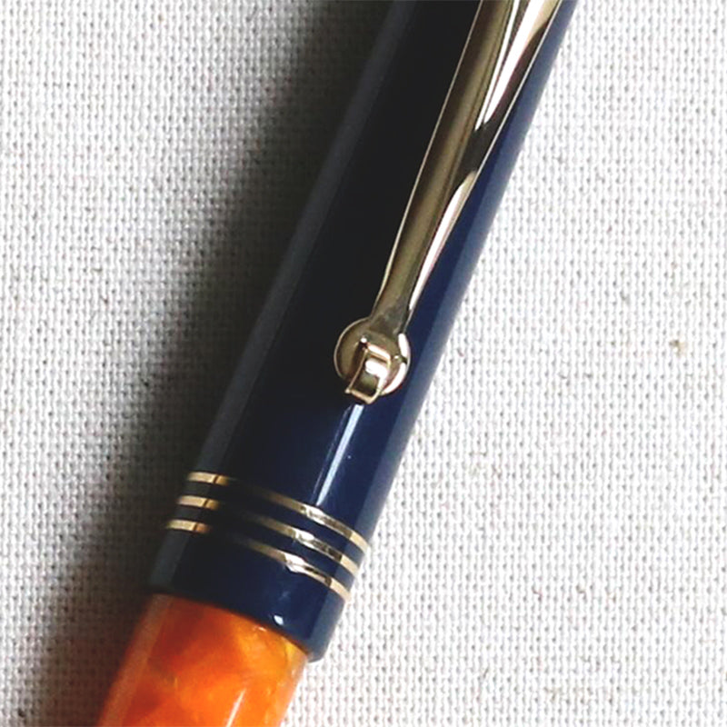 反対色の組み合わせながら、ニュアンスのあるオレンジのボディと、ソリッドなネイビーのキャップとのバランスが絶妙です。