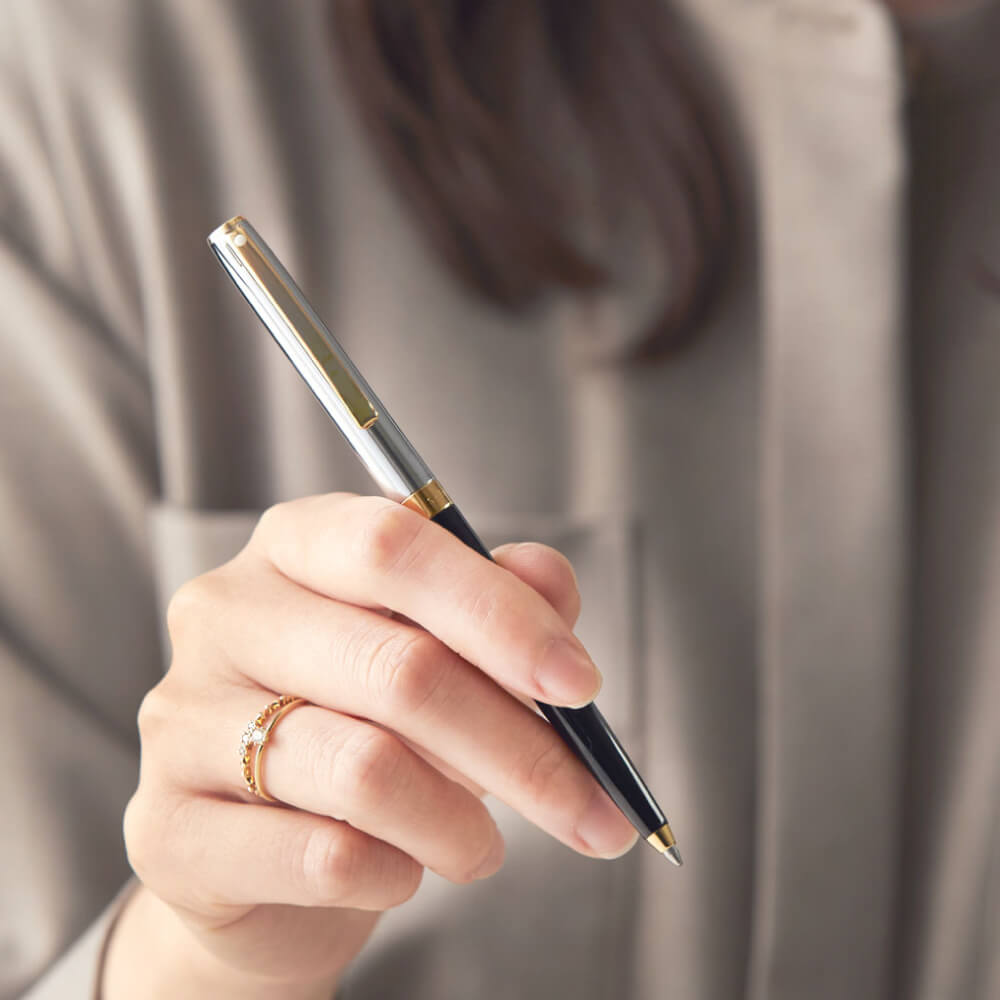 サガリスは、時代を超越したスタイルとモダンなデザインがバランスよくブレンドされたアイテムです。すっきりとした細身のボディと直線的なデザインのゴールドトリムが美しく調和し、華やかさとともに知的で洗練された印象を与えます。ブラックカラーと、シルバーブラックのツートンカラーの2種をご用意しており、シチュエーションやお好みによってセレクト頂けます。女性へのプレゼントとしてもお勧めのシリーズです。