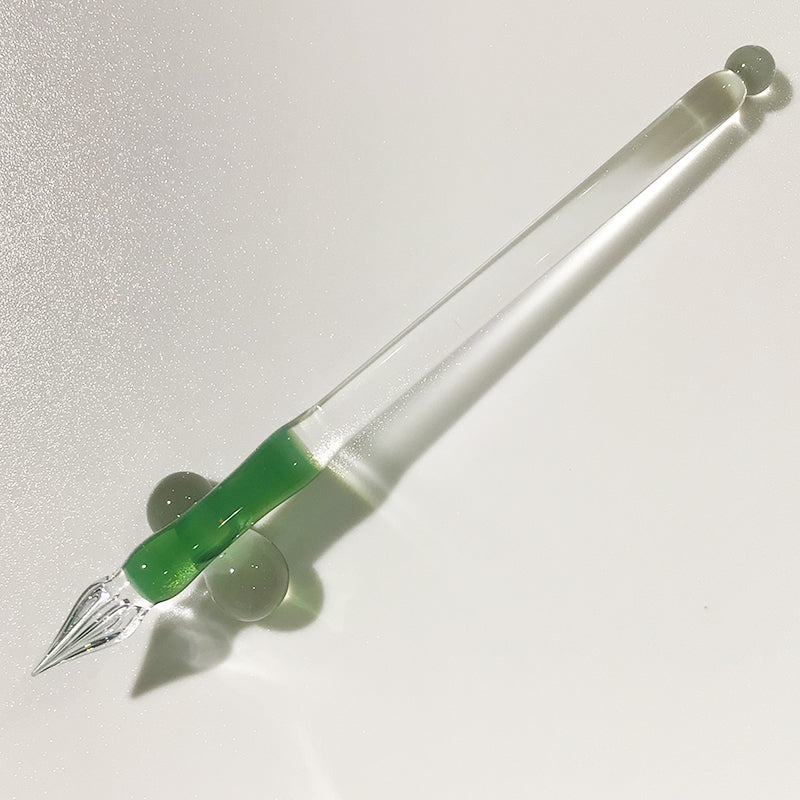 ワンポイントとしてグリップ部分にまろやかなパステルカラーの差し色が入ったガラスペンです。