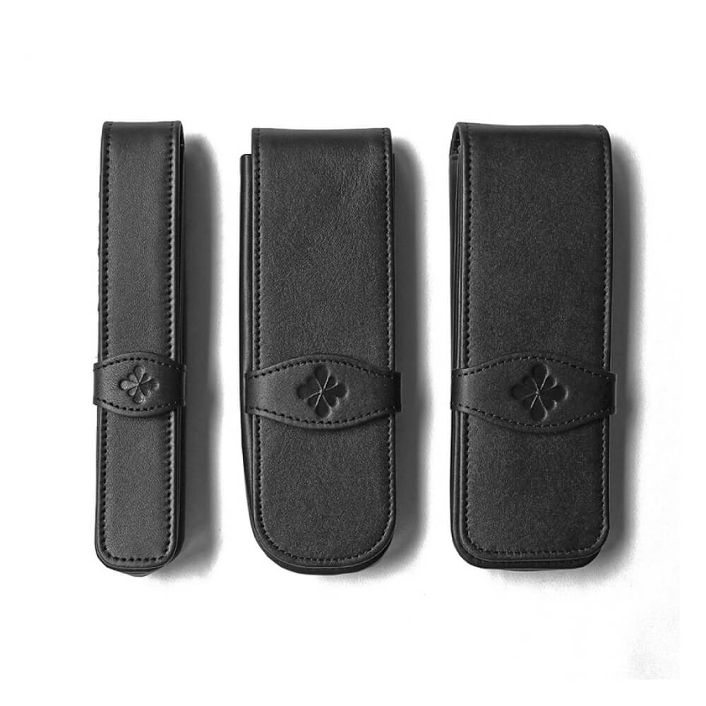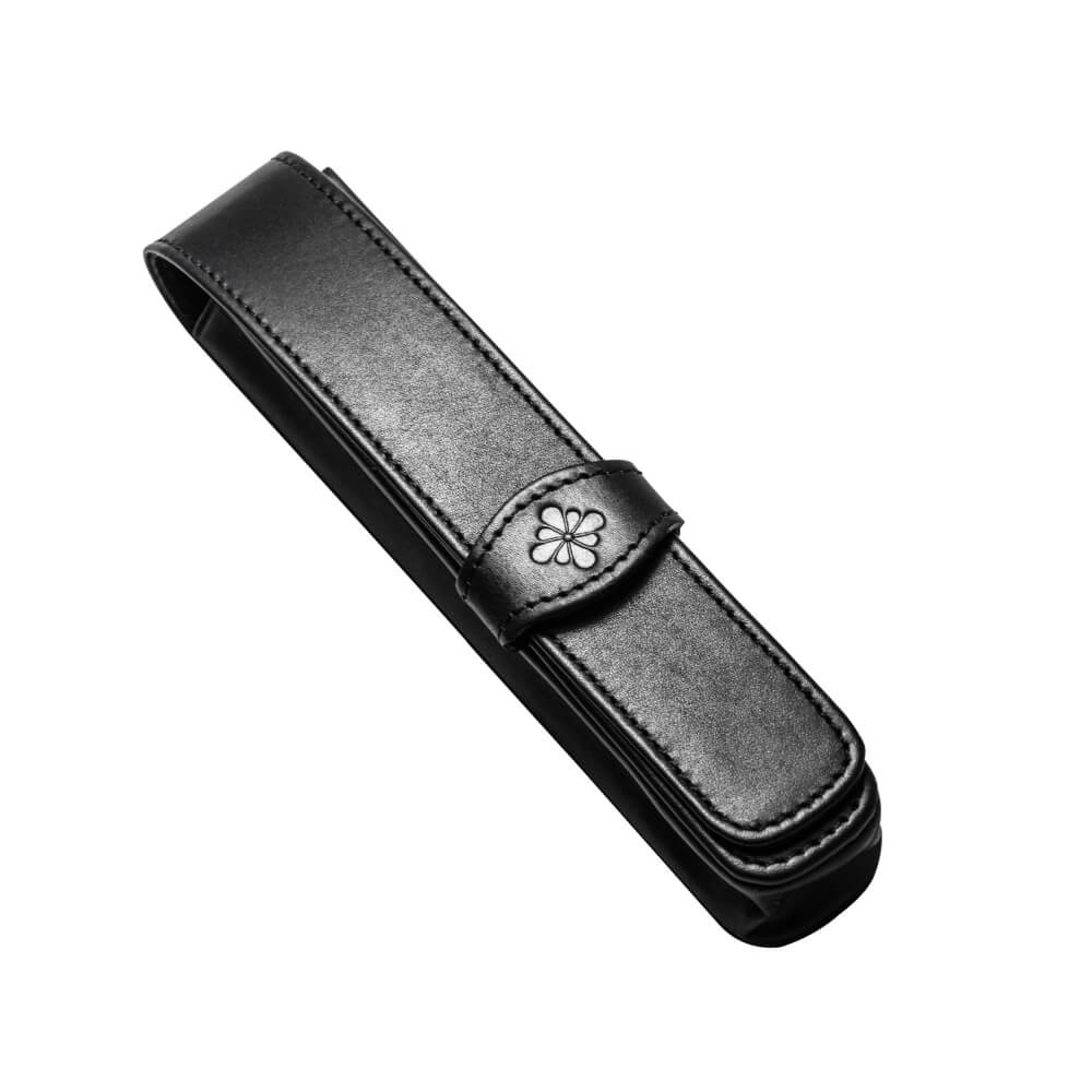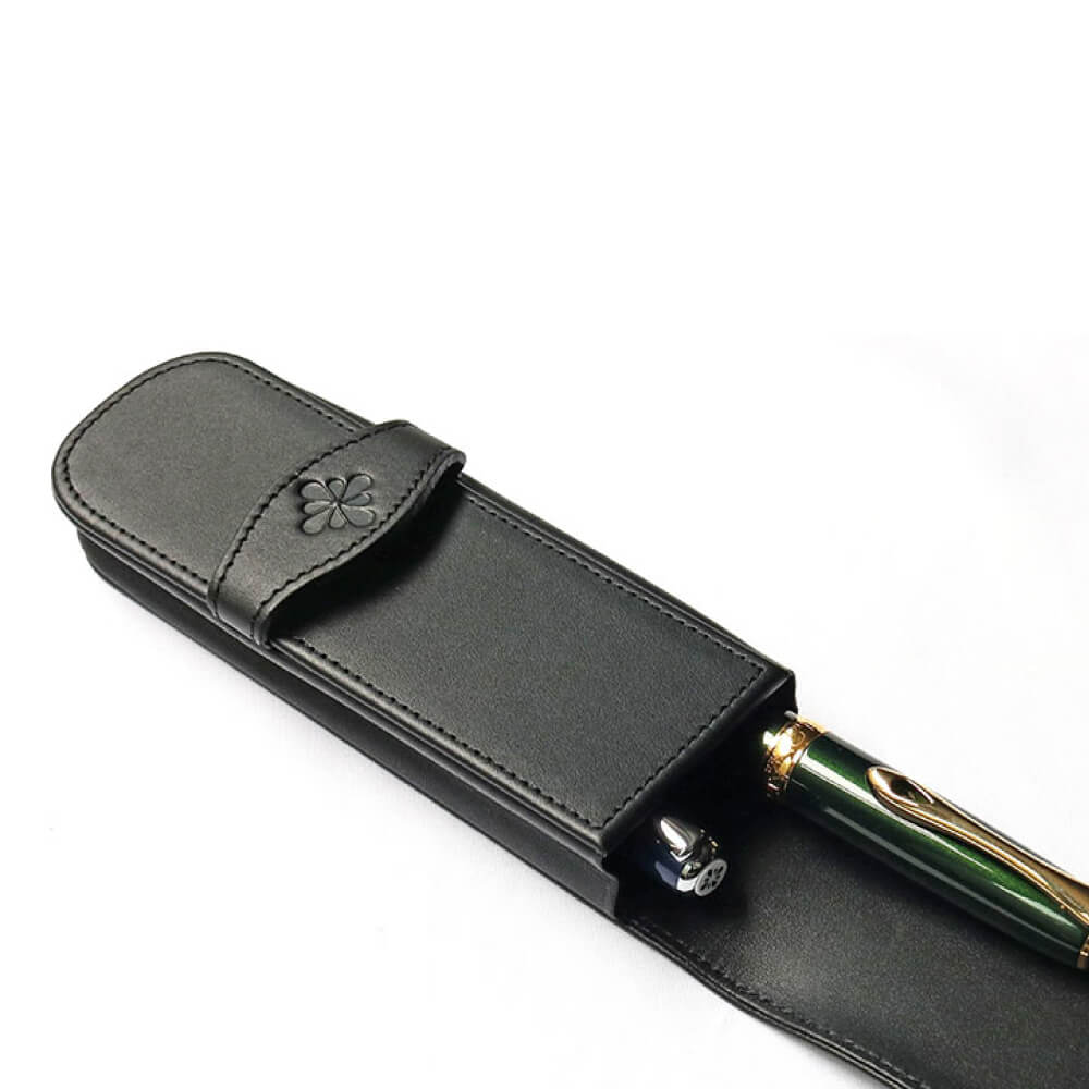 ソフトな牛革製でペンを優しく保護してくれるのは勿論のこと、ベルト部分に型押しされたインクフラワーがアクセントの高級感溢れる仕上がりとなっています。