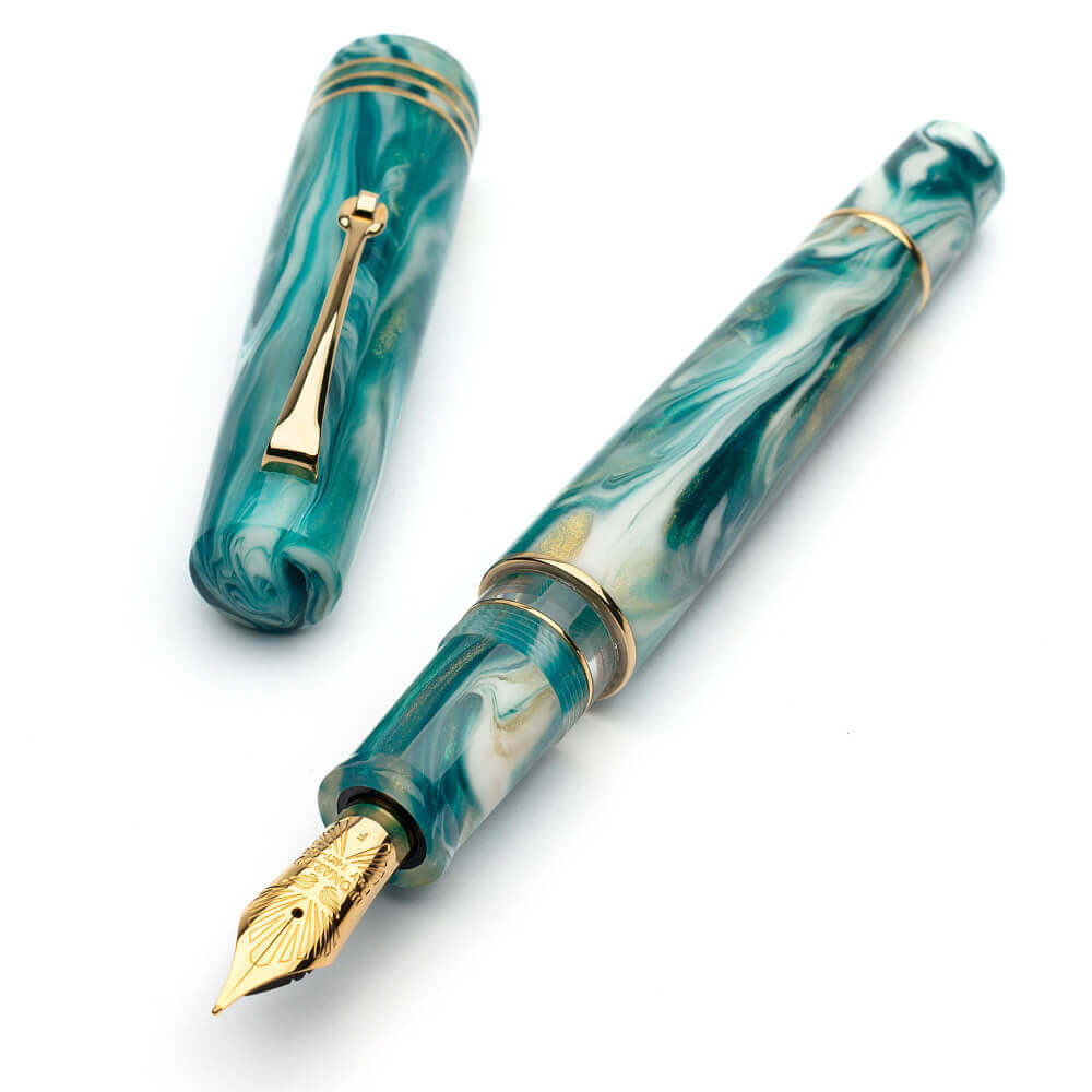 吸入方式は自社製のピストンフィリングシステムを採用、ボディには内部のインク残量が確認できる透明の窓が備わっています。