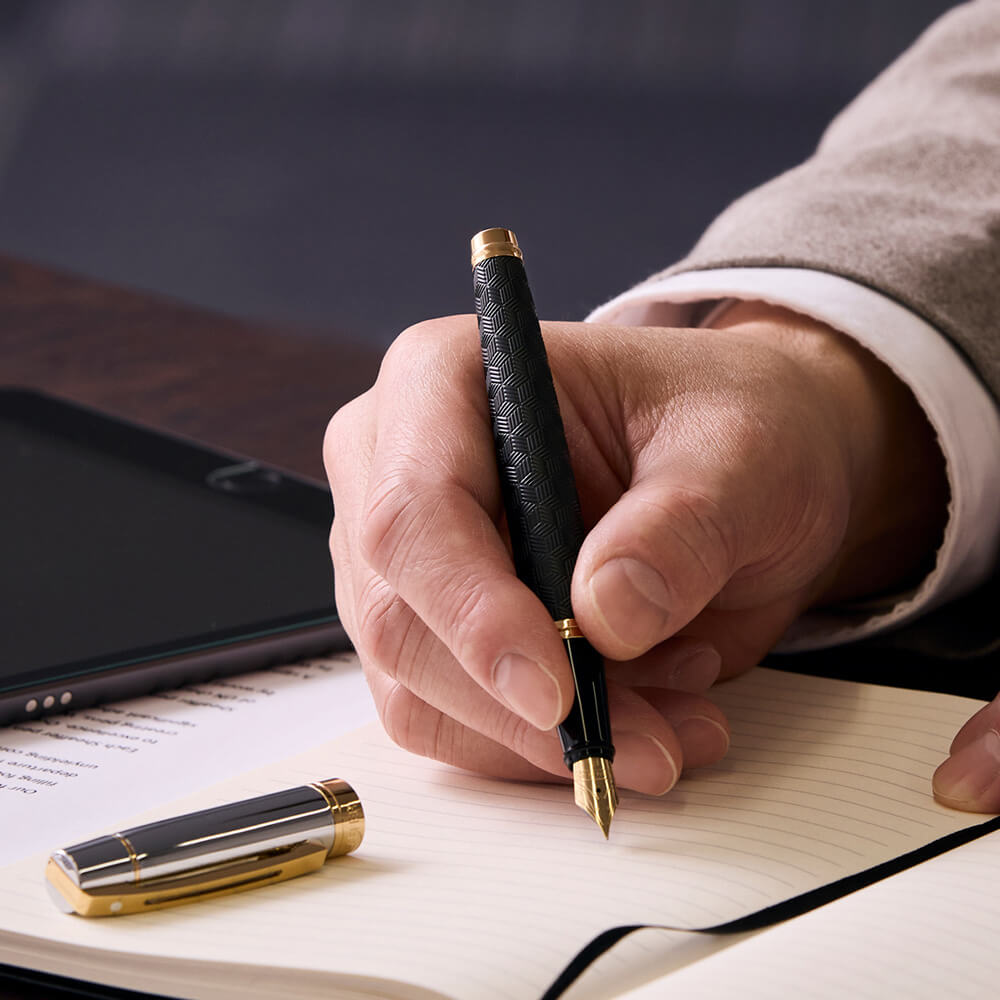 何事にも強い姿勢で立つ人には、力強いペンが適当。シェーファー300は、アイコニックな窓開きクリップと幅広のリングで大胆にデザインされています。