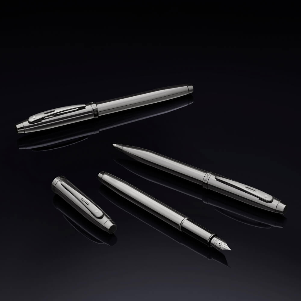 時代に左右されず、賢い選択。シェーファー100は、リーズナブルな価格で端正な印象を与えます。小さい窓の開いた優美なクリップが特徴です。