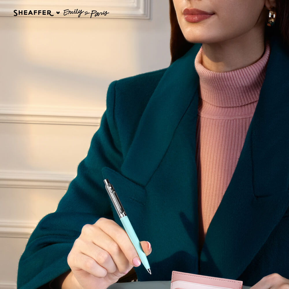 パリのロマンスとシェーファーの精緻さが融合した「シェーファー×エミリー・イン・パリス」コレクションは、より美しく生きること、そして書くことへの招待状です。それぞれのアイテムは、シェーファーが誇る時代を超越したエレガンスと調和し、驚きと魅力を放ちます。手に取ると詩のように感じられるペンのディティールが、エミリーの活き活きとした日々と自然体で洗練された姿を表現しています。