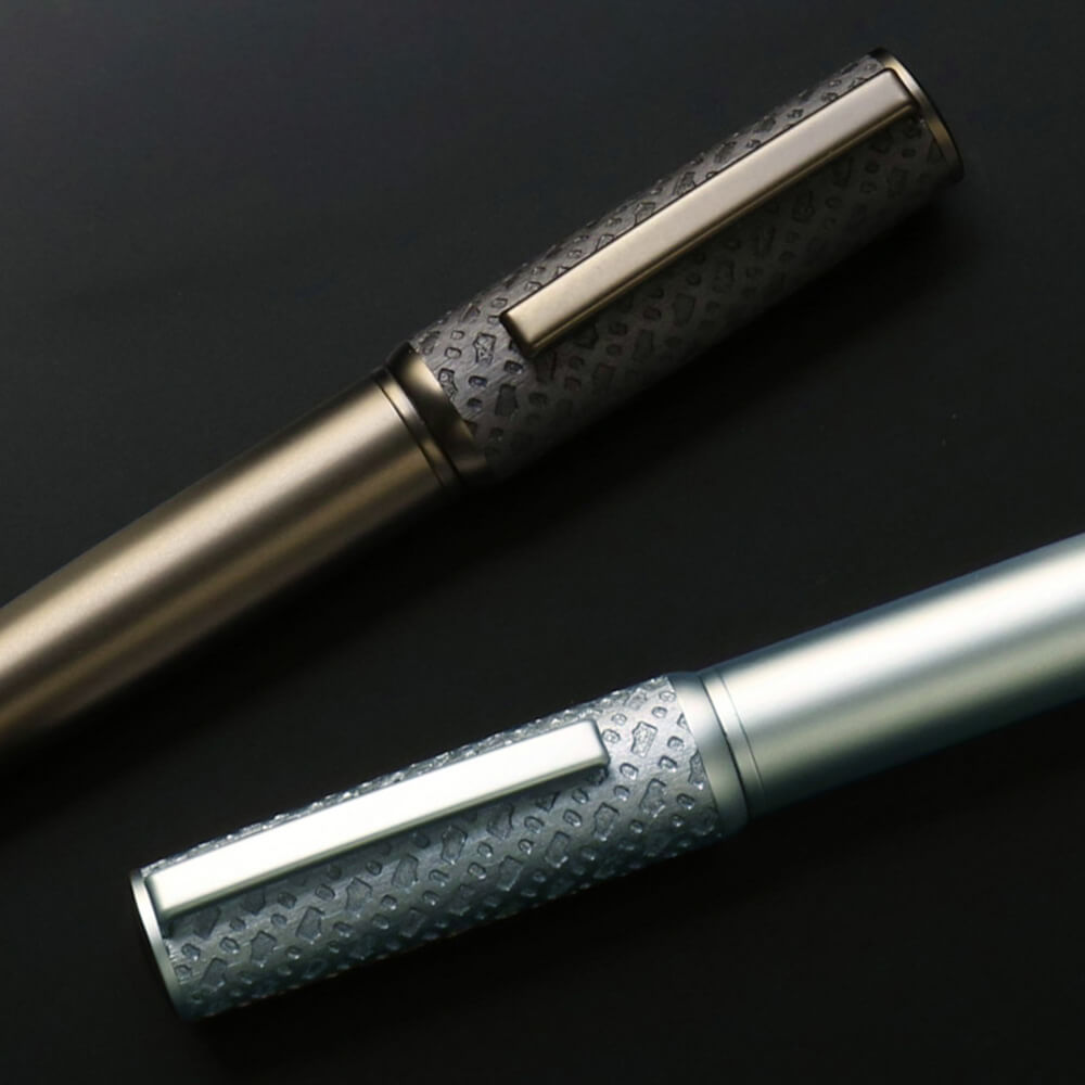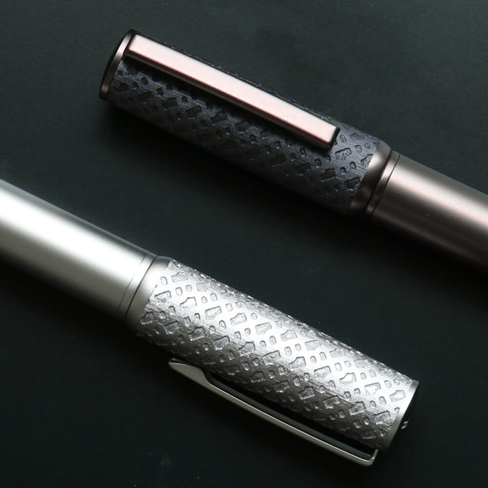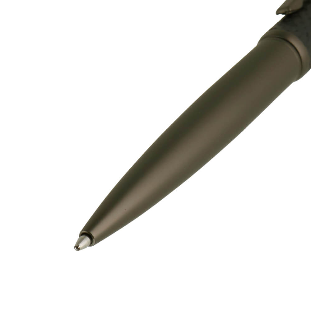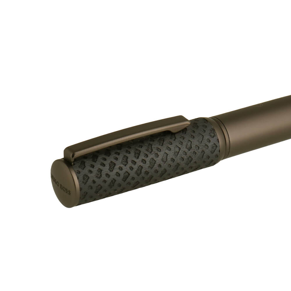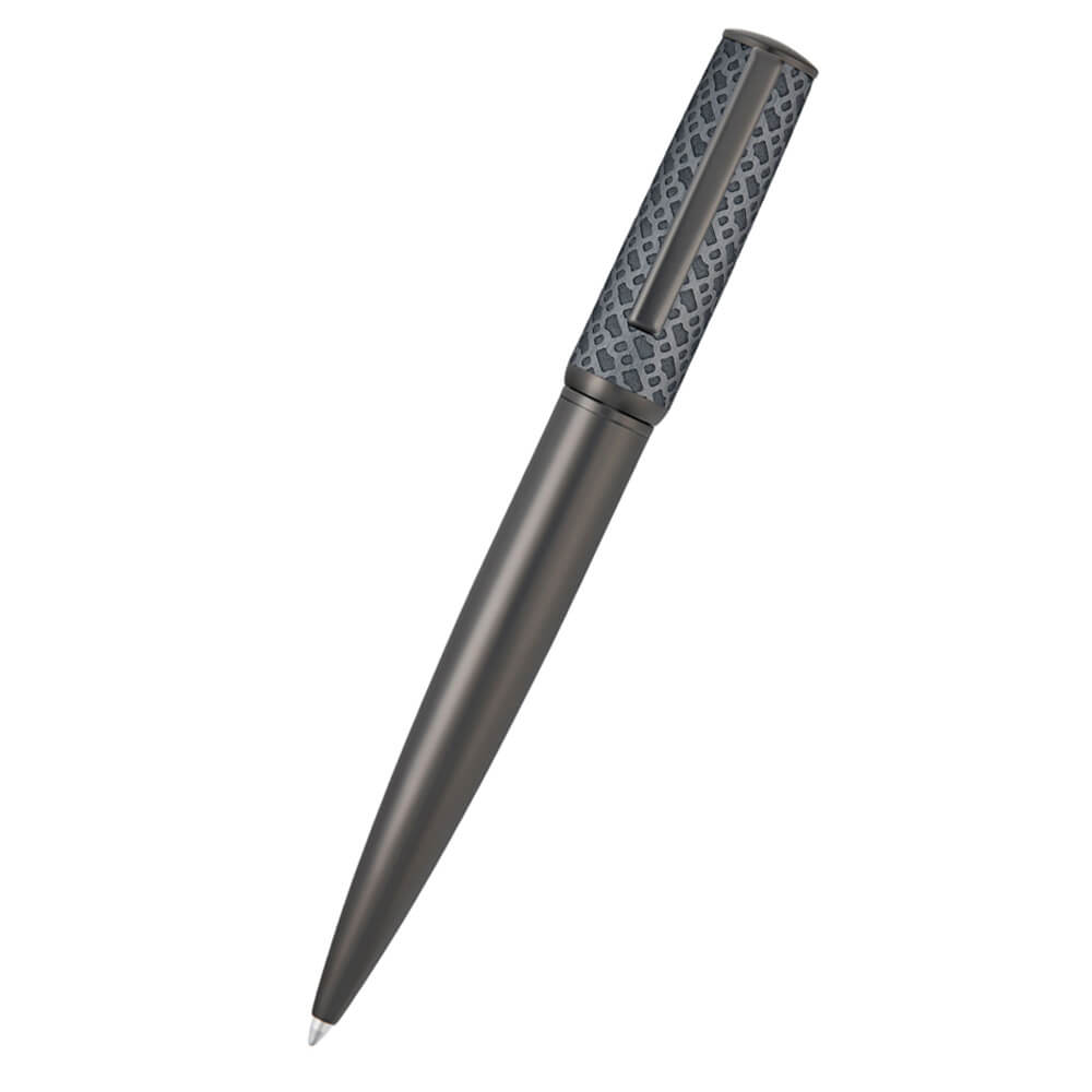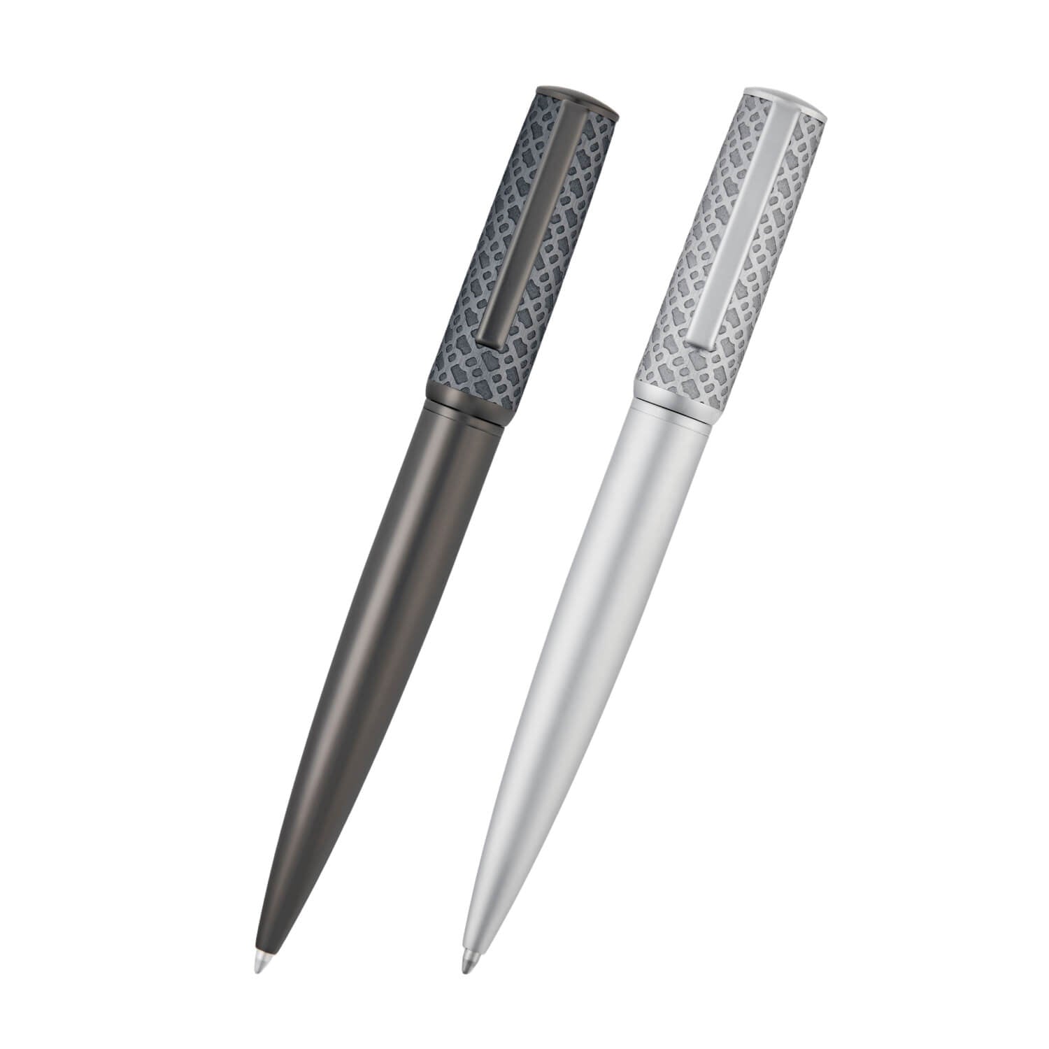 BOSSのアイコニックなモノグラムをブラッシュドアルミニウムで表現したモダンなコレクション。モノグラムをデザインに落とし込むことでブランドを主張しすぎることなく、日常使いしやすいアイテムです。無地の胴軸は太目で重厚感がありながら、ペン先に向かってテーパードしており持ちやすくなっています。