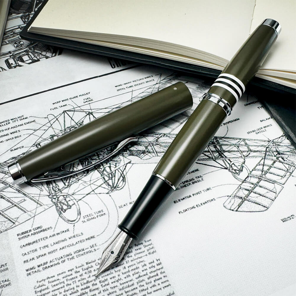 第二次世界大戦時に輸送機として運用され、「スカイトレイン」の愛称でも知られるダグラス社製の飛行機「C-47 ダコタ」にインスパイアされたそのデザインは、航空機の持つ流線型の機能美を見事に表現しています。また「スリップ-イン キャップ」と銘打ったキャップ部分も特徴的で、精緻な設計により滑空するかのごとくスムースな着脱を実現しています。