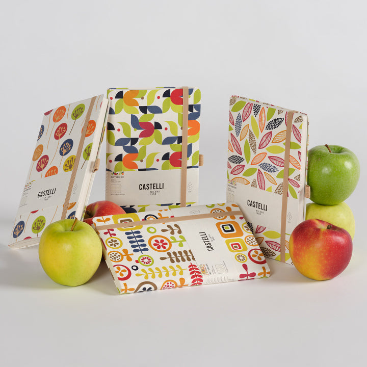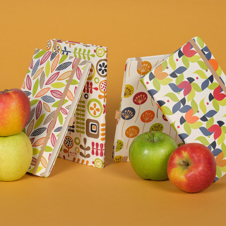 色々なリンゴの品種からインスパイアされたカラーパレットは、〈アッピル〉のエコロジカルな性質をより際立たせるデザインとなっており、春夏秋冬の四季を表現した4種類のノートで構成されています。