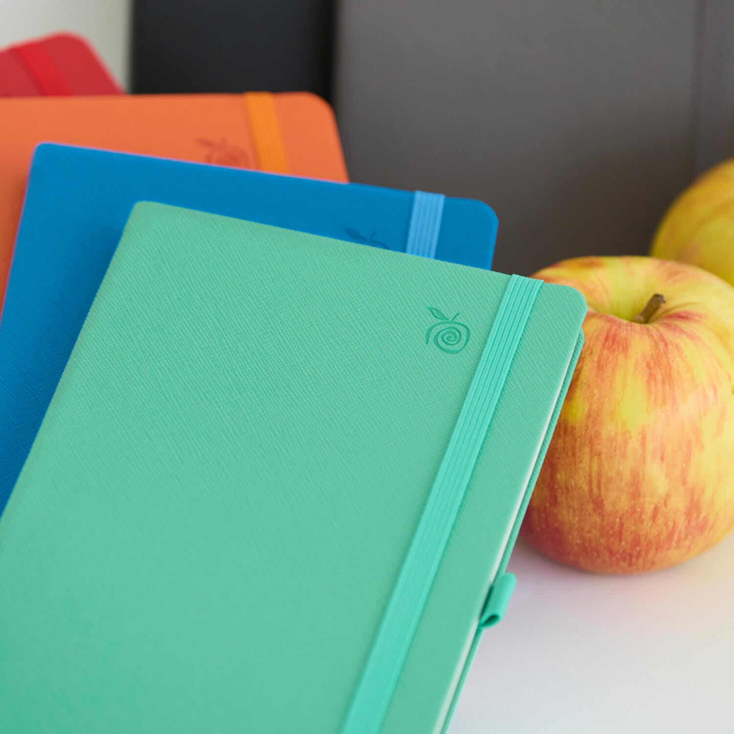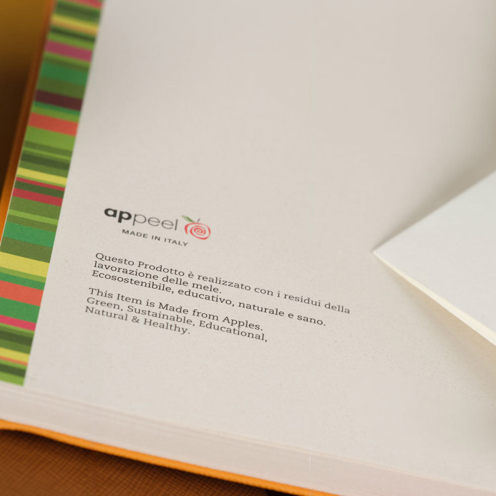 リアルレザーのように見える美しいカバーは、イタリアのオルティゼーイで製造された廃棄されるリンゴの皮などをリサイクルした素材。洗練されたデザインと独特の触り心地を兼ね備えたサフィアーノ風仕上げです。