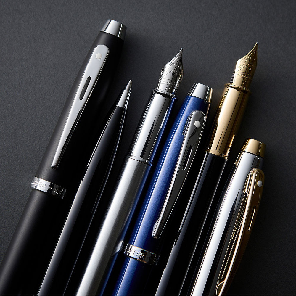 時代に左右されず、賢い選択。シェーファー100は、リーズナブルな価格で端正な印象を与えます。小さい窓の開いた優美なクリップが特徴です。